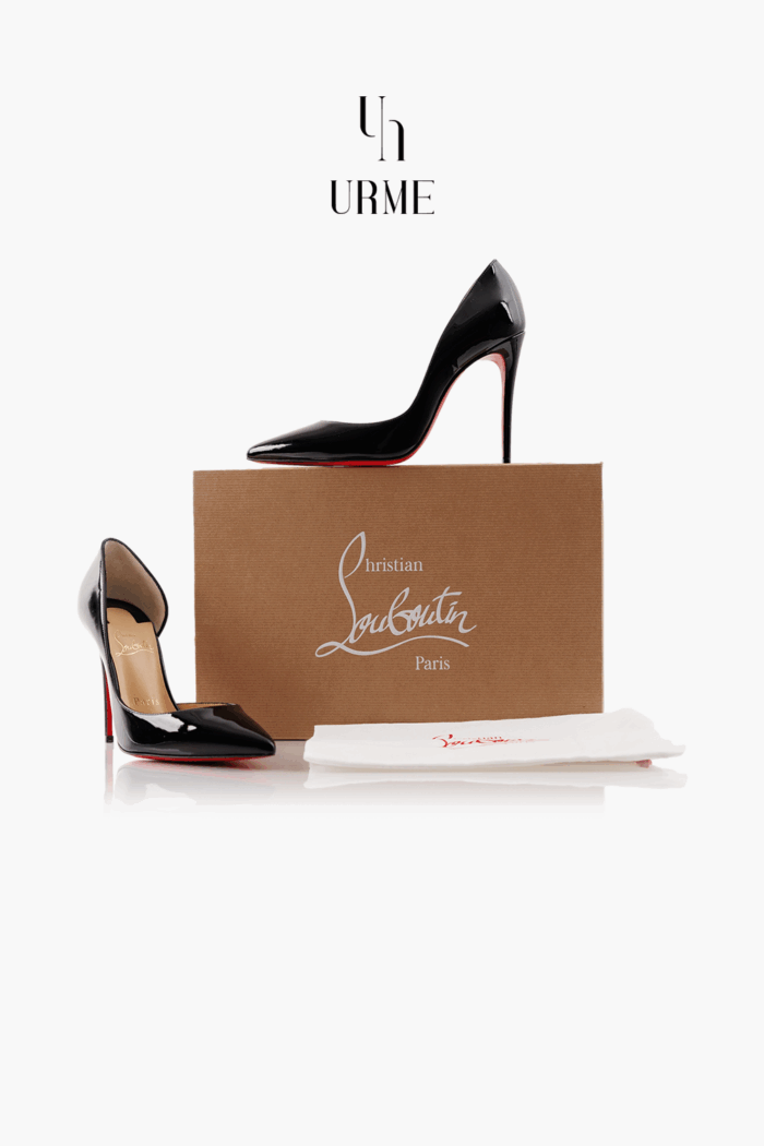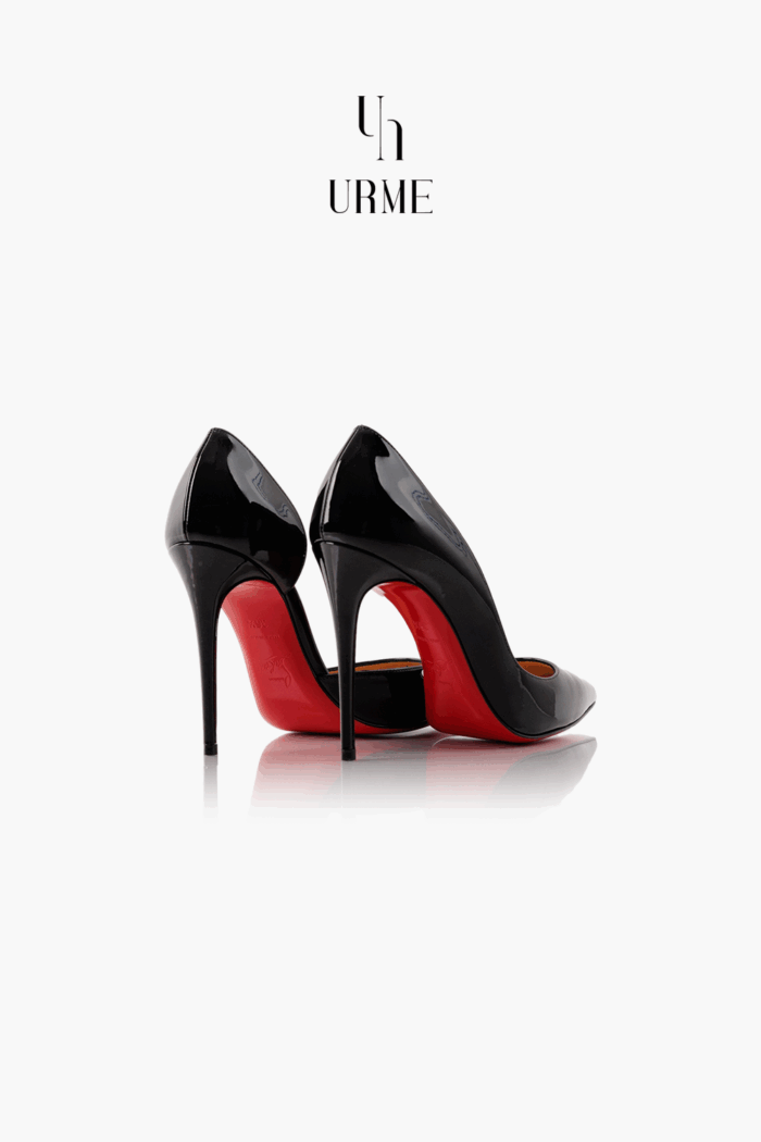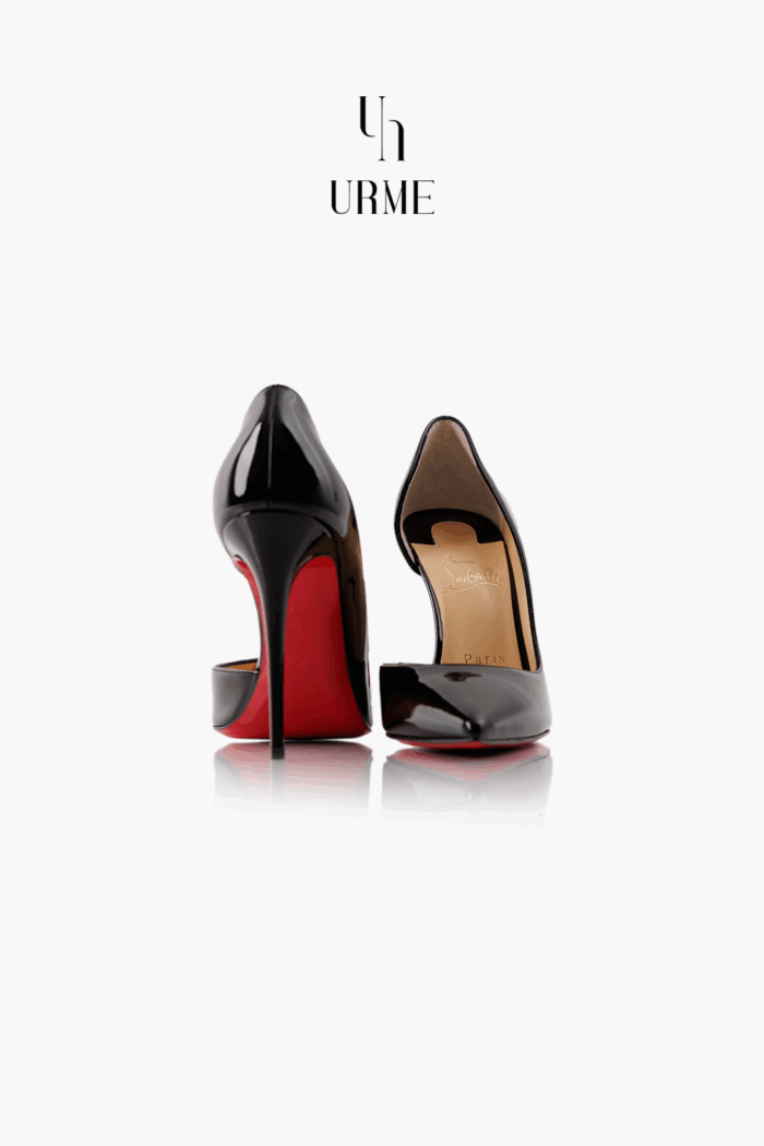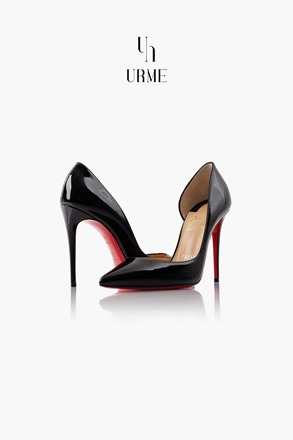 Christian Louboutin’s Iriza 100 Patent Pumps in glossy black patent leather embody timeless sophistication. The d’Orsay cut reveals a glimpse of the arch, while the pointed toe elongates the leg. Set on the Maison’s iconic red sole and a sleek 100 mm stiletto heel, this pair is the ultimate symbol of Parisian allure and evening elegance.
